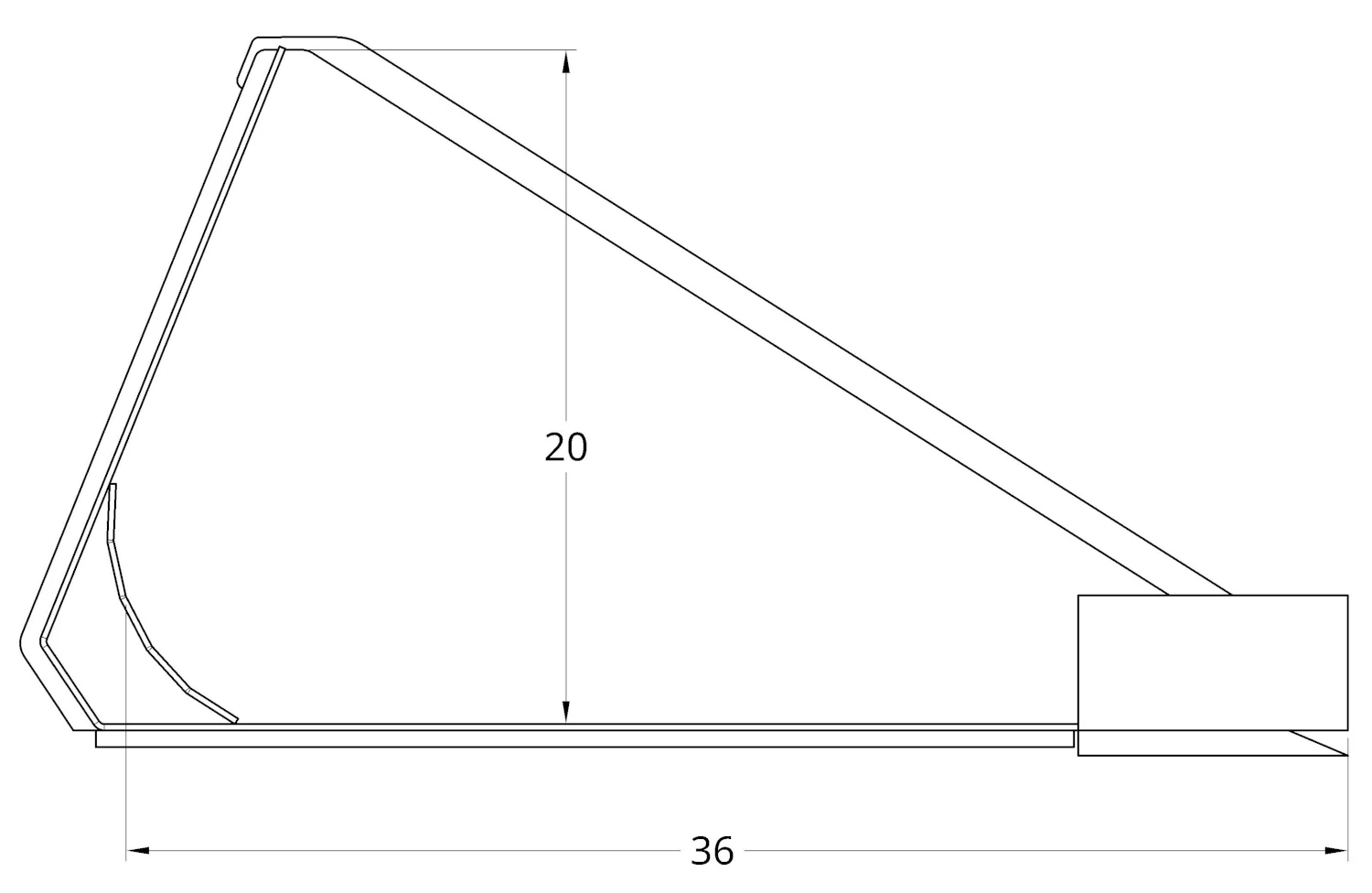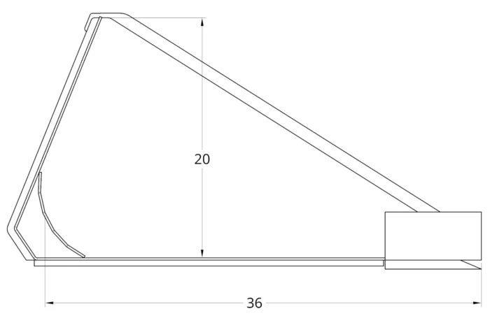 Our top channel brace and bottom radius support add the strength needed to handle the biggest machines. The bottom radius support also adds better clean out. Our standard back degree angle is 68 degrees. We have found this to be a very good fit for most machines in the roll-back and dump positions.