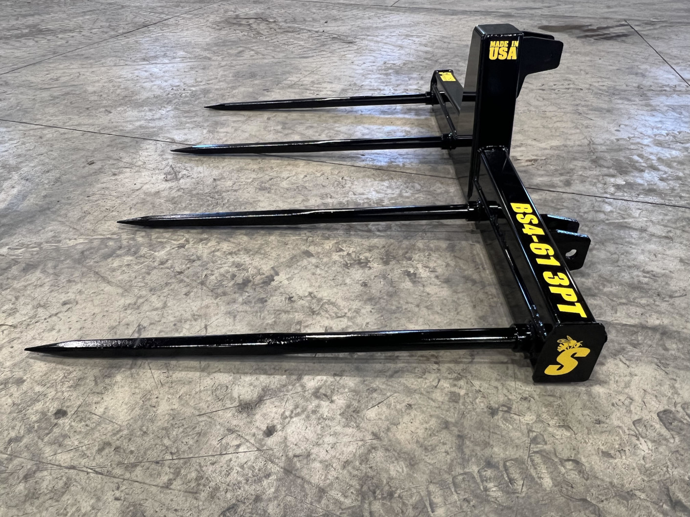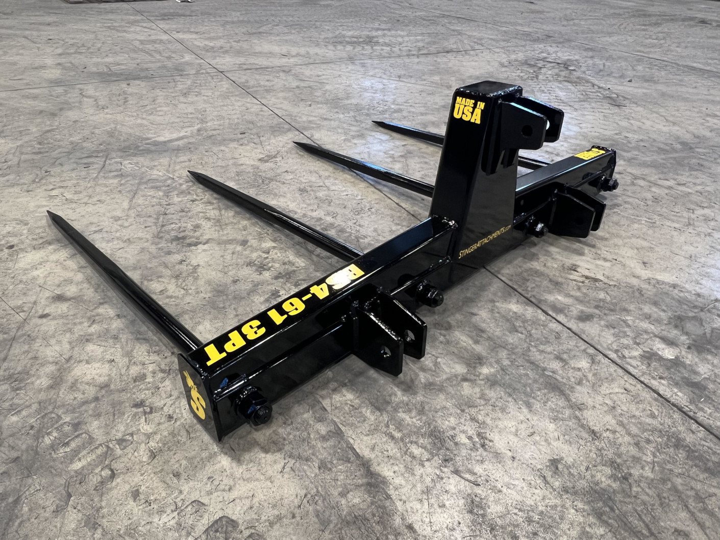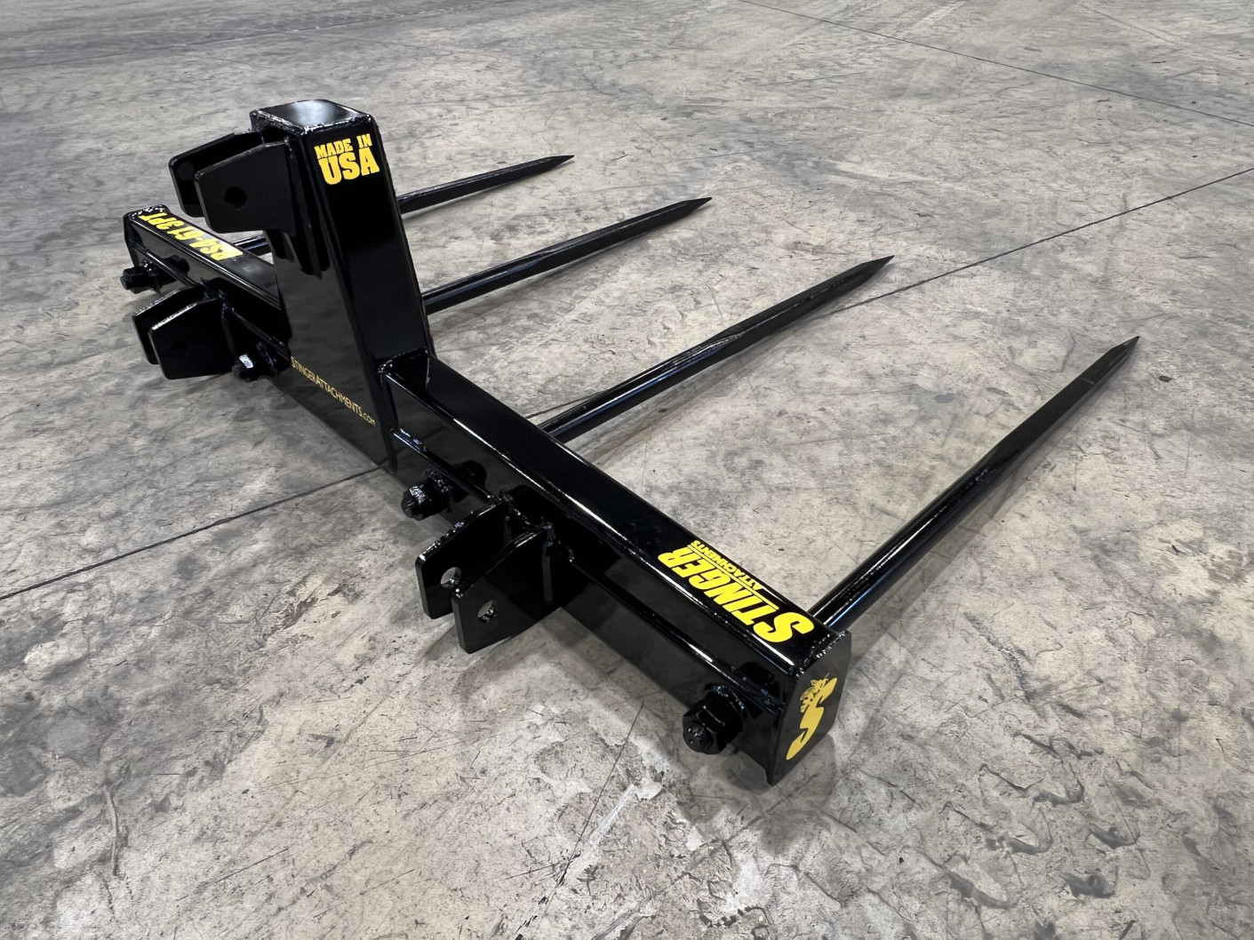 I purchased a bale spear (two prong) and asked if they could bring the spears in a couple of inches (about 34” on center) in order to allow me to use this attachment periodically as a pallet fork. Within the first week of having the attachment, I was able to safely and comfortably grab a 1,000 lb flail mower off the back of a truck. This thing is SOLID – expect good things from this for years to come. The actual ship time happened to be much quicker than expected, but the service and advice leading to the purchase and the quality of the implement are really what earned the 5 stars…quick shipping was just a bonus. Will buy from them again.