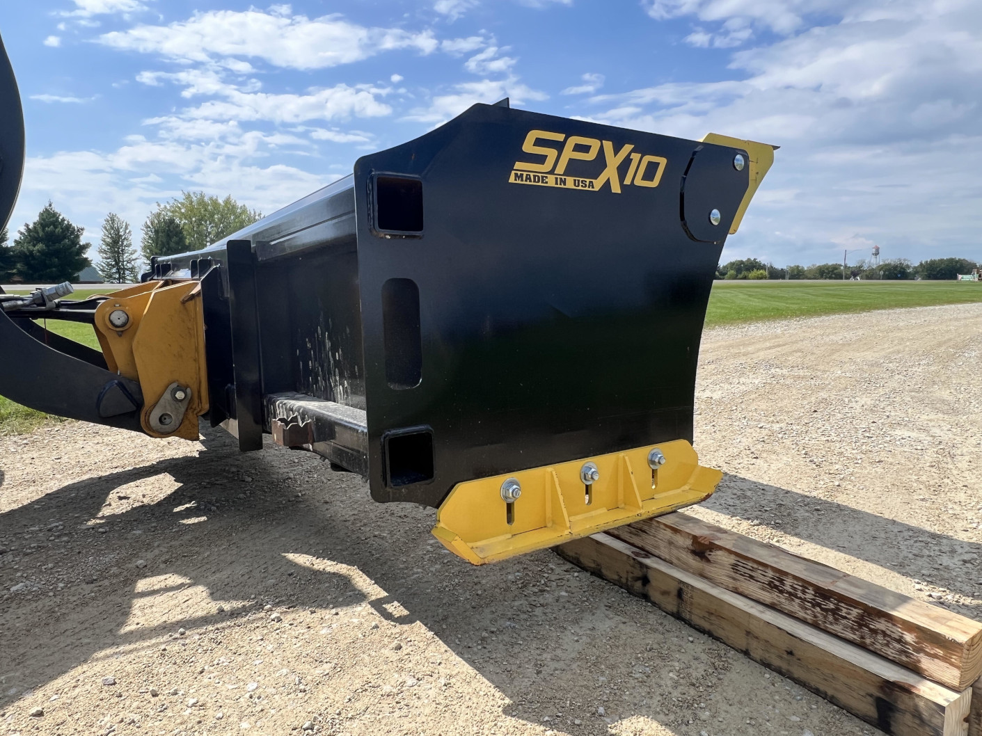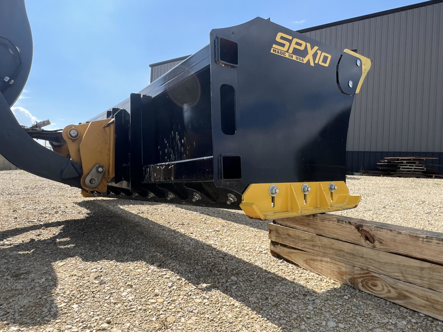 A snow pusher attachment can be faster than a bucket because you don’t have to stop and dump a load of snow after each pass, saving valuable seat time. The ¾-inch by 6-inch cutting edge allows you to slice through hard-packed snow and ice with ease. This edge bolts onto the unit to ensure a secure fit. The optional Rubber Cut Edge works well for hard surfaces such as pavement or concrete to better protect the surface and flex over cracks and minor height changes. Adjustable ½-inch wear skids enable you to raise the cutting edge as the terrain changes and you require additional height.