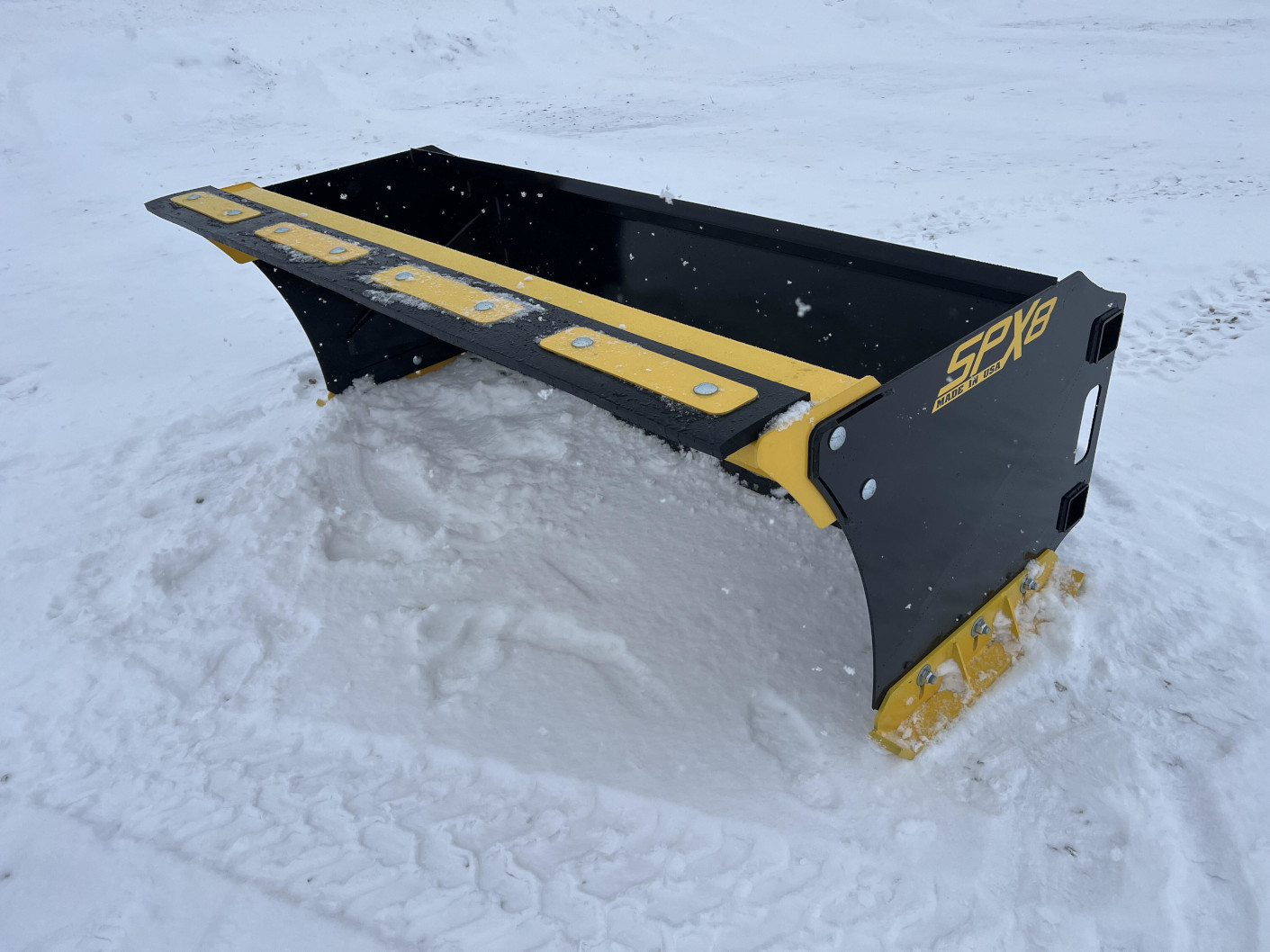 Our tractor snow pusher is available in widths ranging from 6 feet to 10 feet to ensure the right fit for your equipment. It also features a substantial 30-inch by 30-inch box size, allowing you to move high volumes of material at once. The 3/16 grade 50 steel moldboard, supported by upper and lower channels, provides extra pushing strength for your most demanding snow removal jobs.