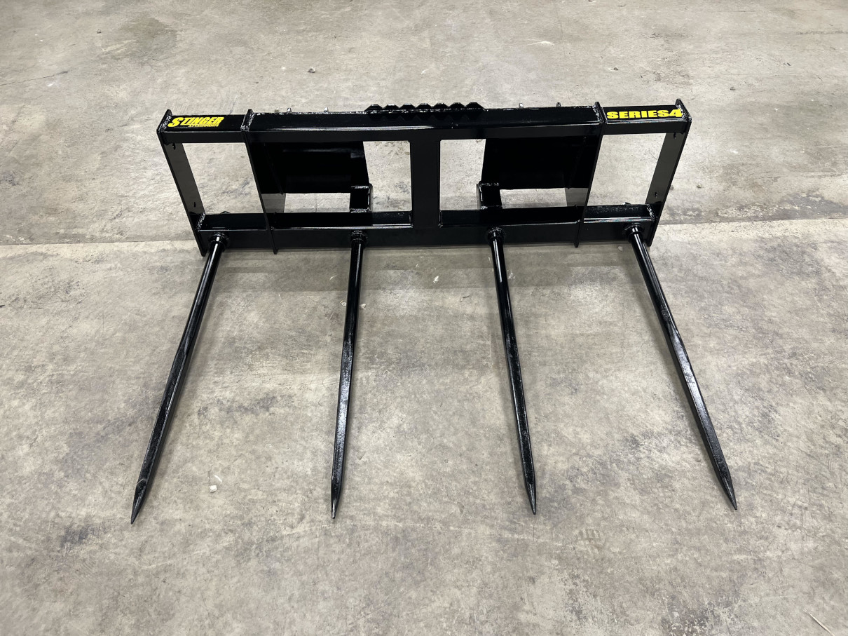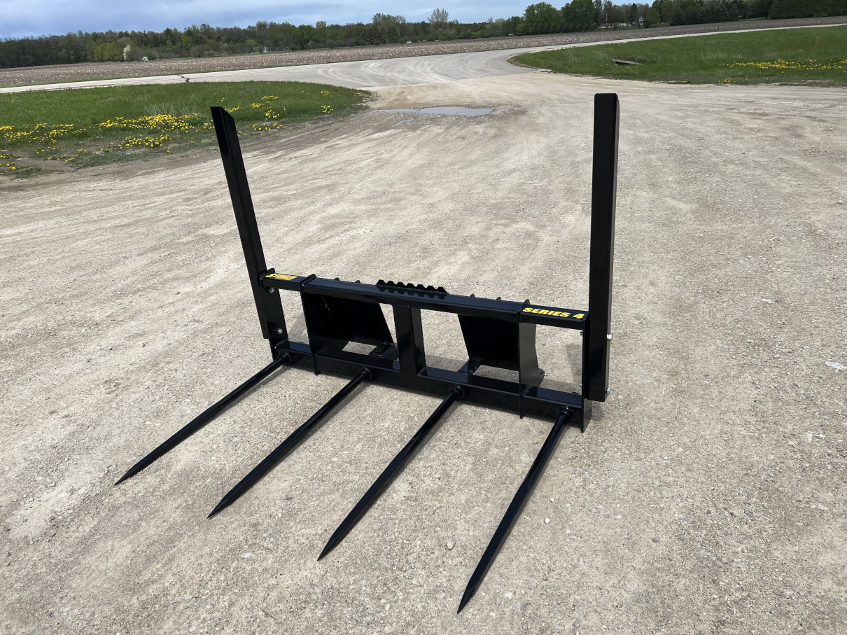 Models are available with spears ranging from 39 inches to 49 inches in usable length. For greater efficiency, select the bolt-on support option that allows the attachment to carry two bales simultaneously.