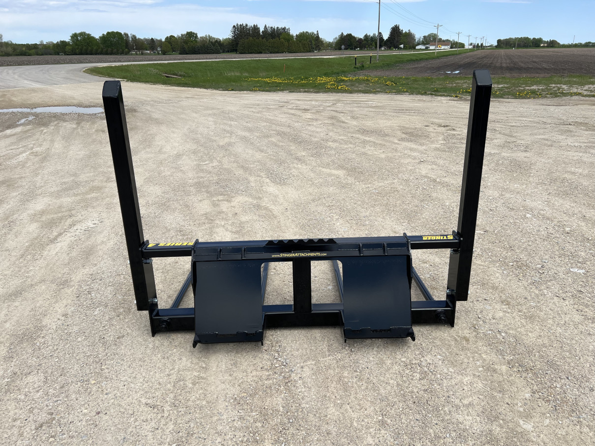 The Stinger Attachments Series 4 Bale Mover is intended to utilize small to medium size wheel loaders to move large numbers of large square bales in minimal time. It features an optional set of bolt-on supports to enable safe and secure movement of 2 large square bales at a time. For moving hay from a field, loading or unloading a trailer, or into or out of a barn fast, this large round baler mover will help get the job done. The Series 4 Bale Mover is offered with a universal skid steer mount plate or many other common Global or ISO agricultural or construction mounts.