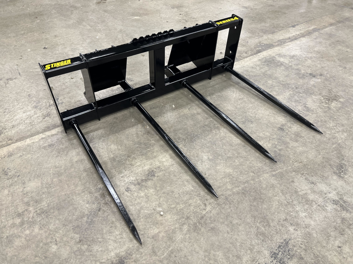 At Stinger Attachments, we manufacture our utility tractor hay forks for durability. Each Series 4 bale fork features rugged Grade 50 steel side plates that enhance the attachment’s durability and strength. For versatility, we designed the Series 4 to be compatible with Universal Quick Attach, JD 100-500 Series and Global Euro attachment styles.